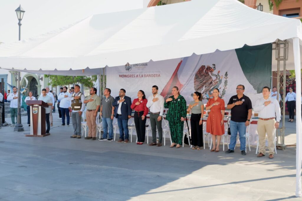 Los Cabos, Baja California Sur.- En el marco de la ceremonia cívica de honores a la bandera, realizada este lunes 20 de octubre en la explanada del Palacio Municipal, el V regidor Jesús Alberto Alvarado Aragón, en representación del alcalde Christian Agúndez Gómez, destacó los avances y retos en materia ambiental, reiterando el compromiso de fortalecer un desarrollo responsable y consciente en el municipio.