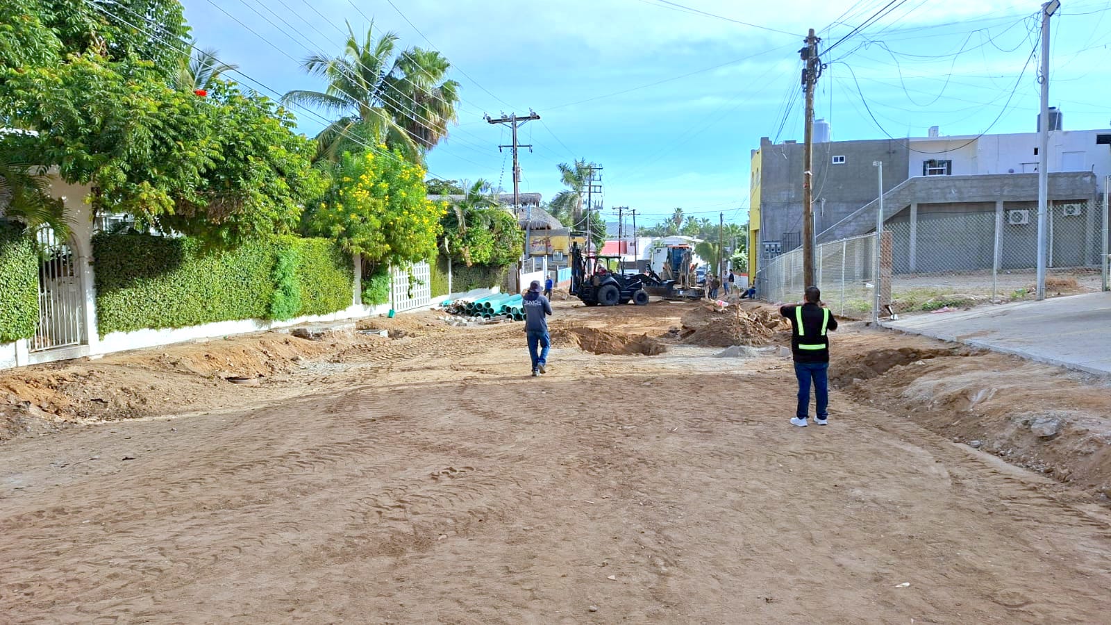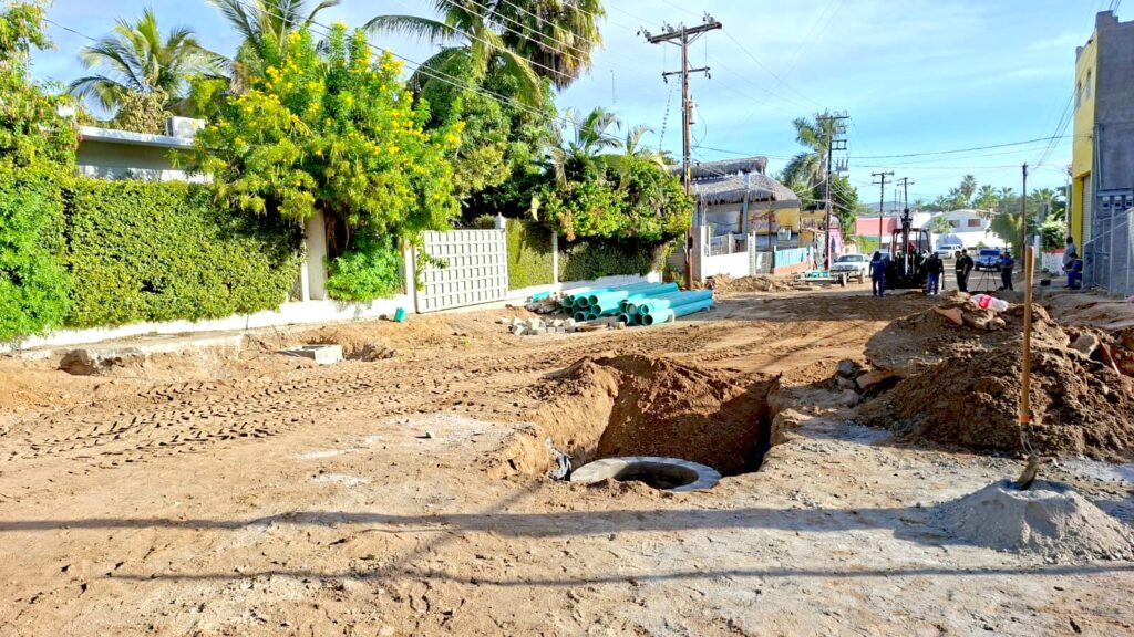 Los Cabos, Baja California Sur.– Como parte de las acciones orientadas a fortalecer la movilidad y transformar la infraestructura vial del municipio, el XV Ayuntamiento de Los Cabos desarrolla la pavimentación integral con concreto hidráulico de la calle Paseo de Los Marinos, en la colonia El Chamizal, en San José del Cabo, a través de la Dirección General de Obras Públicas y Asentamientos Humanos.