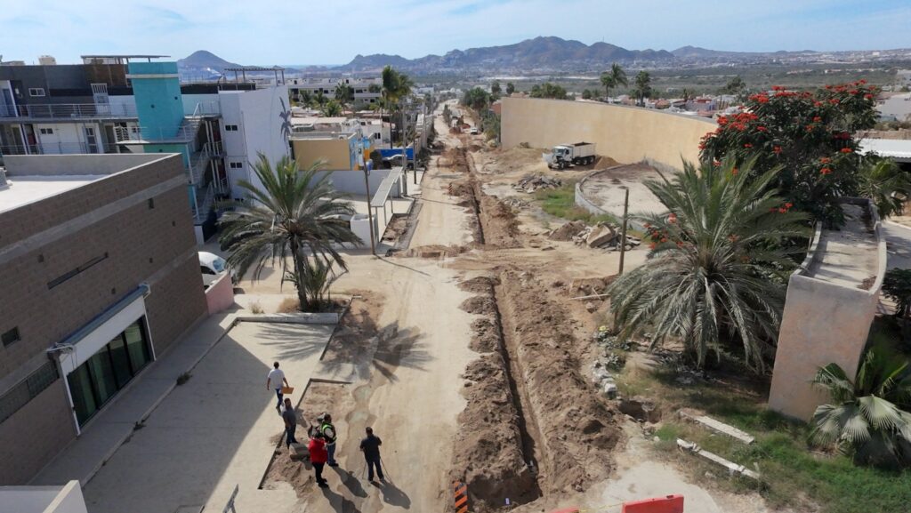 Los Cabos, Baja California Sur.– Como parte de las acciones prioritarias para fortalecer la infraestructura urbana y mejorar la movilidad, el XV Ayuntamiento de Los Cabos registra avances en la obra de pavimentación integral con concreto hidráulico de Camino El Tezal, en Cabo San Lucas.