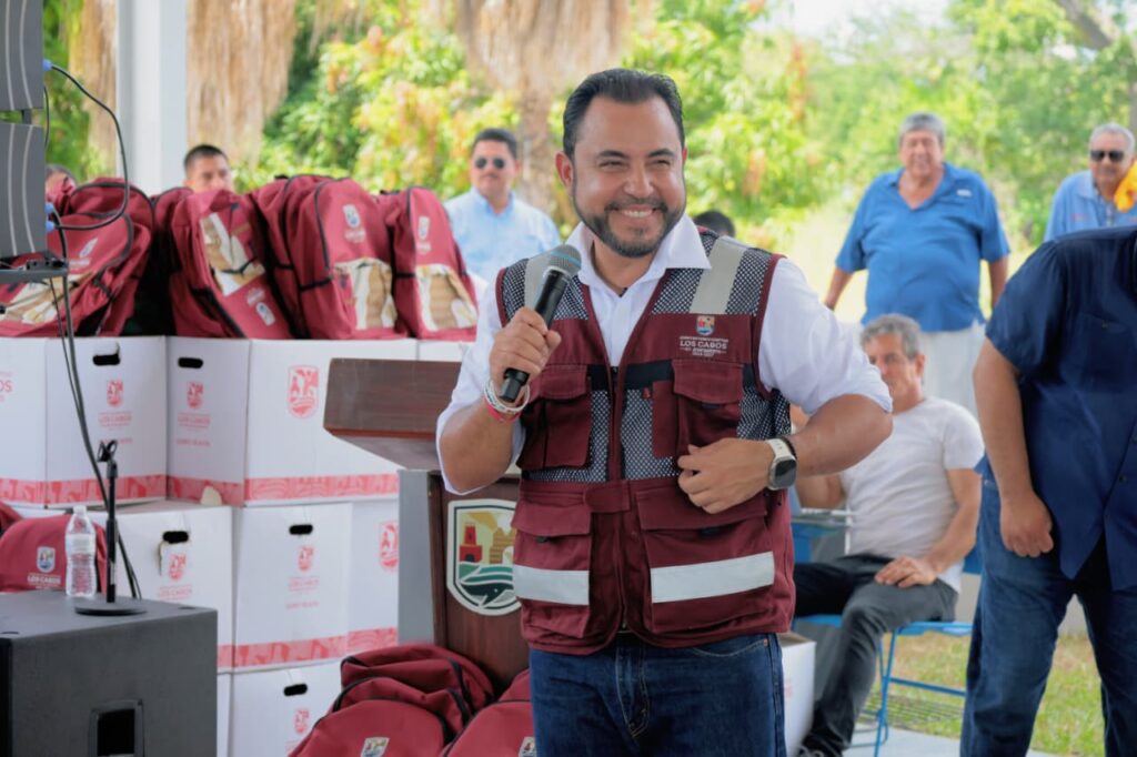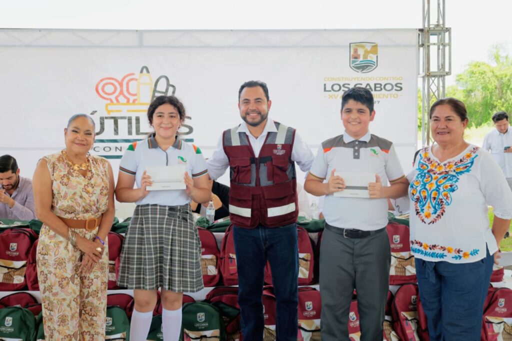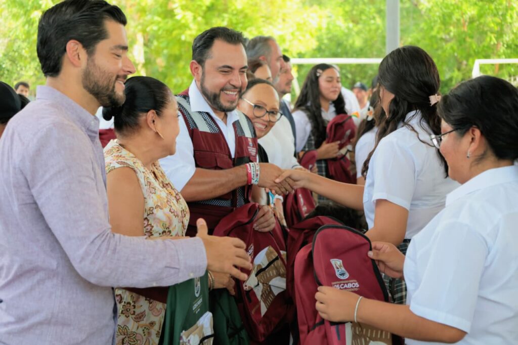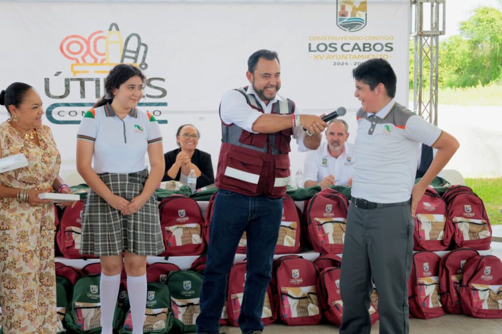 Los Cabos, Baja California Sur.- Como parte de las acciones y compromisos con el sector educativo, el presidente municipal de Los Cabos, Christian Agúndez Gómez visitó las delegaciones de la zona norte del municipio para realizar la entrega de paquetes de útiles escolares mediante el programa “Útiles con Cambio”, beneficiando ya a más de 15 mil estudiantes en el municipio en tan solo una semana.