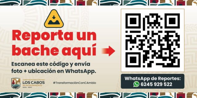 El pasado lunes 22 de septiembre, el presidente municipal Christian Agúndez puso en marcha un sistema digital que permite a la población colaborar en la identificación y solución de problemas relacionados con baches en colonias y tramos federales. La plataforma funciona mediante un código QR, una línea telefónica y mensajería instantánea al número (624) 592 9522, donde se solicita que al momento de realizar el reporte se integre la ubicación y fotografía del bache.