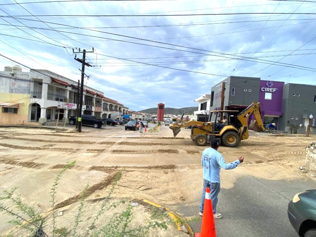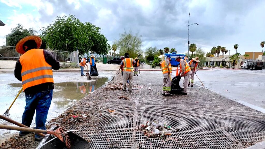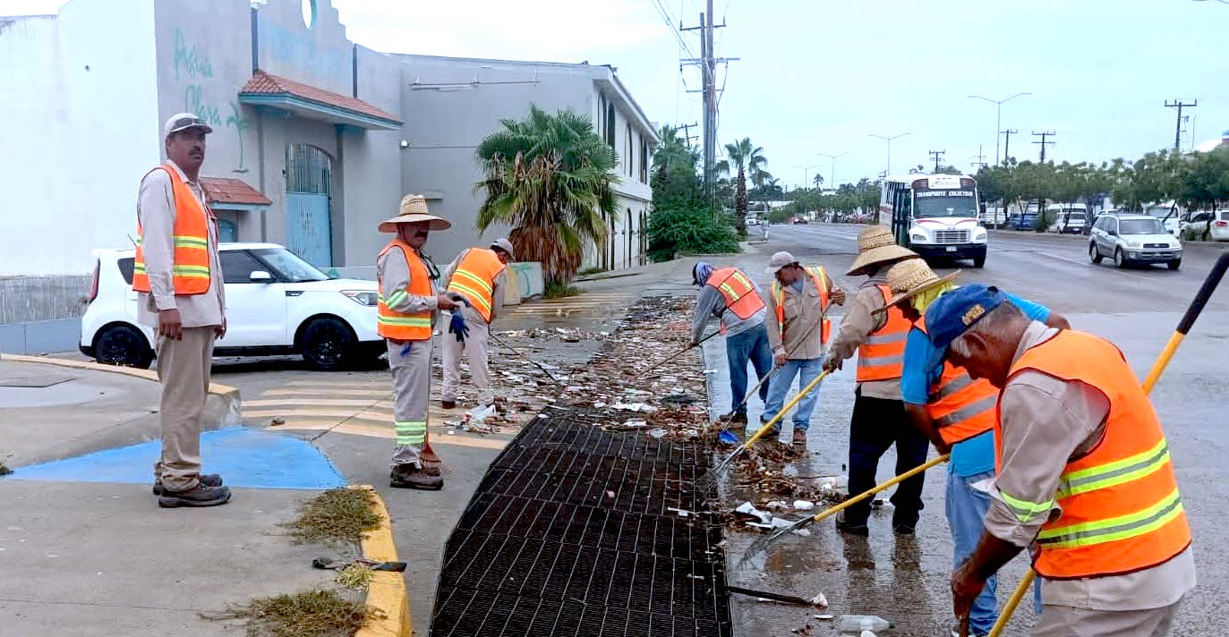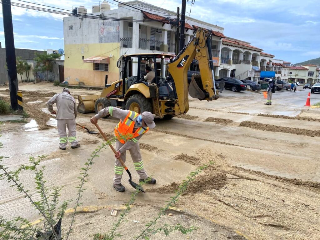 Los Cabos, Baja California Sur.- Tras las precipitaciones registradas este lunes 25 de agosto en gran parte del municipio, cuadrillas de la Dirección General de Servicios Públicos realizan labores de limpieza y retiro de residuos sólidos en distintos sectores de la cabecera municipal.
