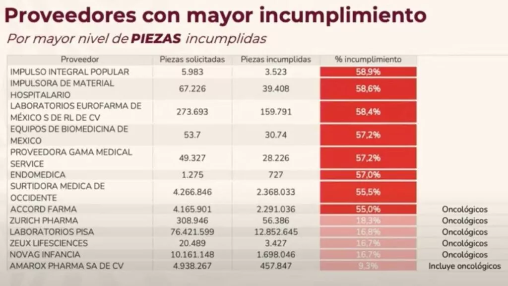 Eduardo Clark, subsecretario de Integración y Desarrollo del Sector Salud, reveló los nombres de 34 compañías que, de acuerdo con la administración federal, no han cumplido con la entrega de 15 millones de piezas de medicamentos oncológicos comprometidos en contratos.