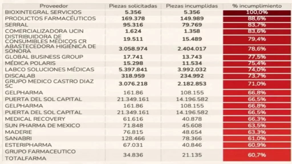 Dentro de la lista de proveedores de medicamentos que incumplen con el surtido de las piezas al Gobierno hay al menos 11 que han incumplido con más del 70%.