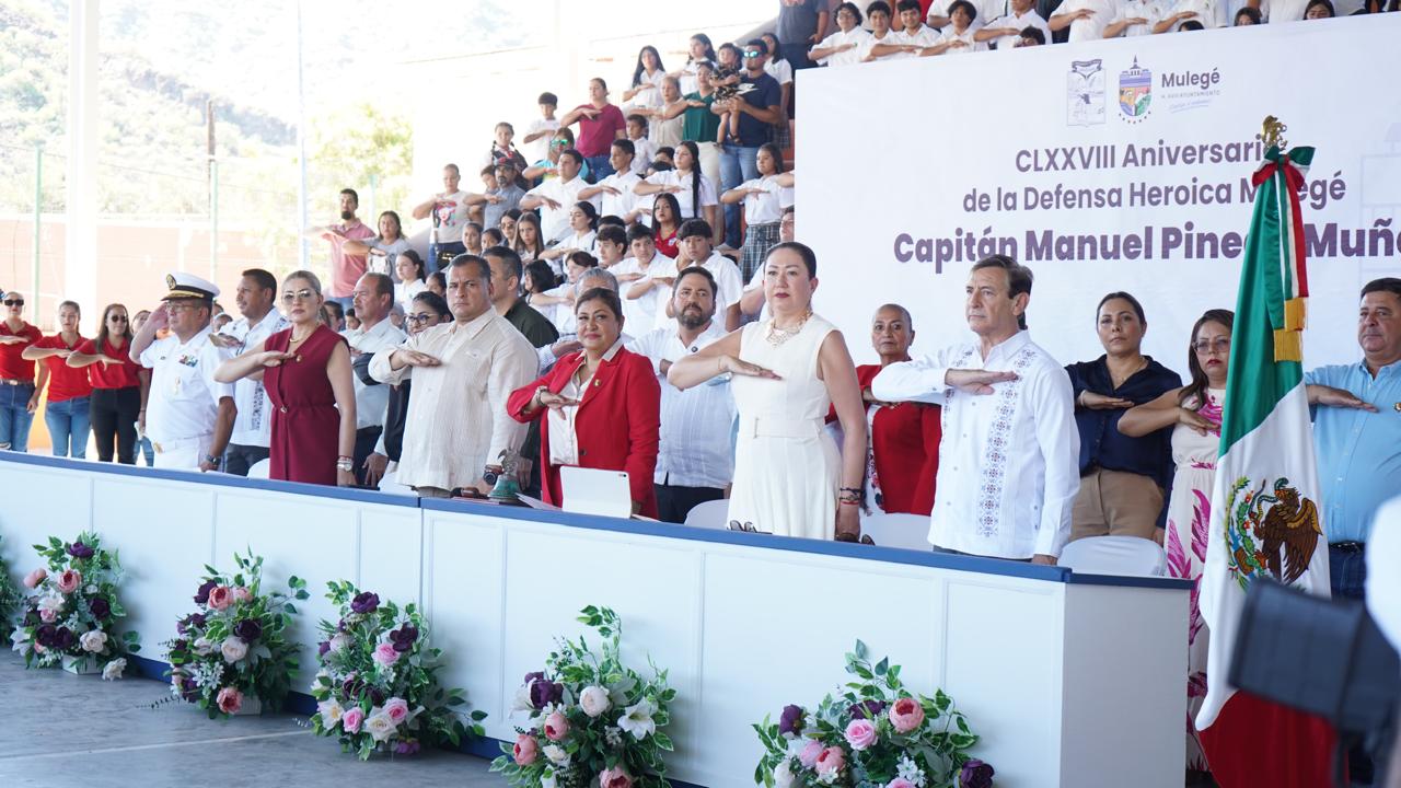 En el marco de la ceremonia conmemorativa del 178 aniversario de la defensa de la Heroica de Mulegé, el Congreso del Estado de Baja California Sur participó activamente en este importante acto cívico que recuerda la valentía de un grupo de sudcalifornianos encabezados por el Capitán Manuel Pineda Muñoz, quienes en 1847 resistieron con honor la intervención extranjera, logrando una victoria histórica frente a las fuerzas invasoras norteamericanas.