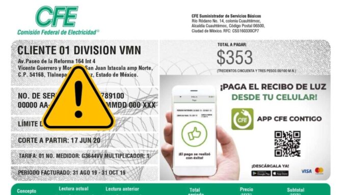 CFE alerta por fraude con descuentos en recibo de luz