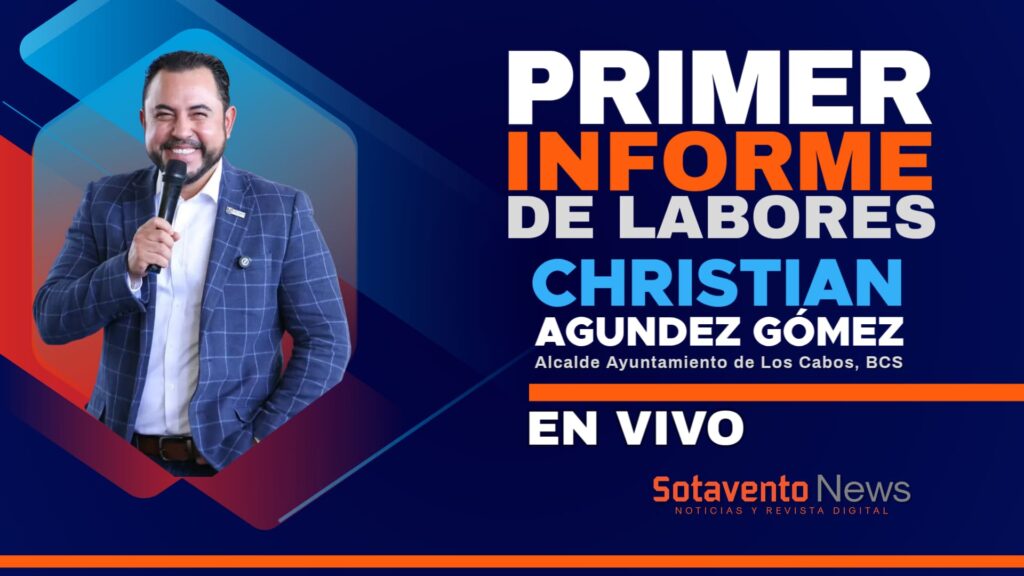 Este sábado 15 de noviembre sigue la transmisión del 1er Informe de Labores desde la Plaza León Cota Collins, en Cabo San Lucas, donde el presidente municipal Christian Agúndez presentará los avances, acciones y resultados alcanzados durante el primer año de administración, bajo el eje Transformación Con Cambio.