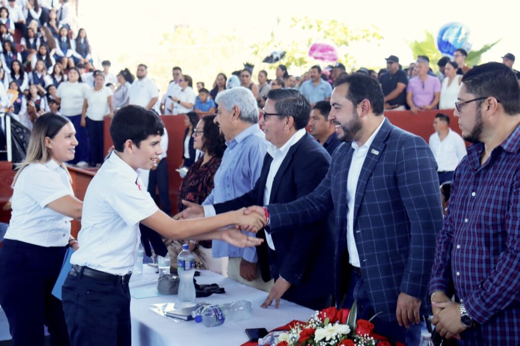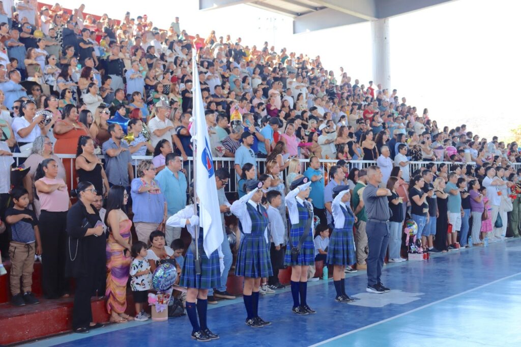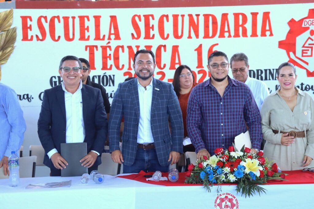 Los Cabos, Baja California Sur.– En el marco del cierre del ciclo escolar 2024-2025, el alcalde de Los Cabos, Christian Agúndez Gómez, acompañó este martes a estudiantes y personal docente de la Escuela Secundaria Técnica No. 16 en su ceremonia de graduación, celebrada en Cabo San Lucas. La generación 2022-2025 de este plantel educativo llevó el nombre del presidente municipal y tuvo como madrina a la diputada local Gabriela Montoya Terrazas.