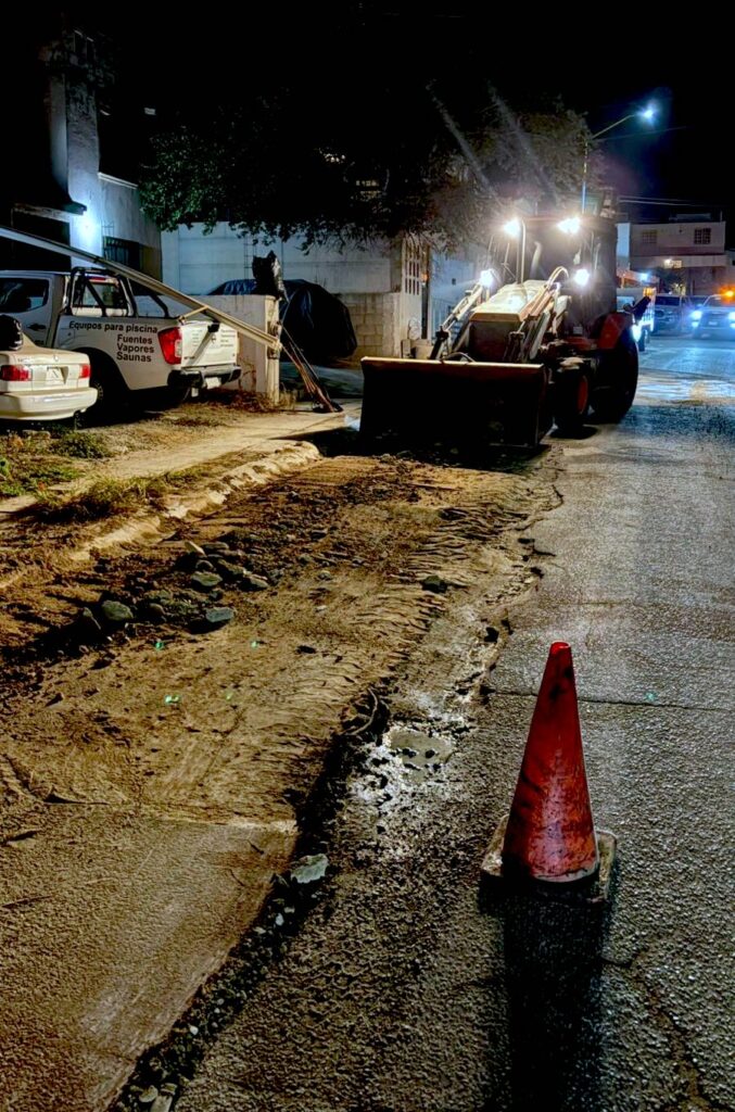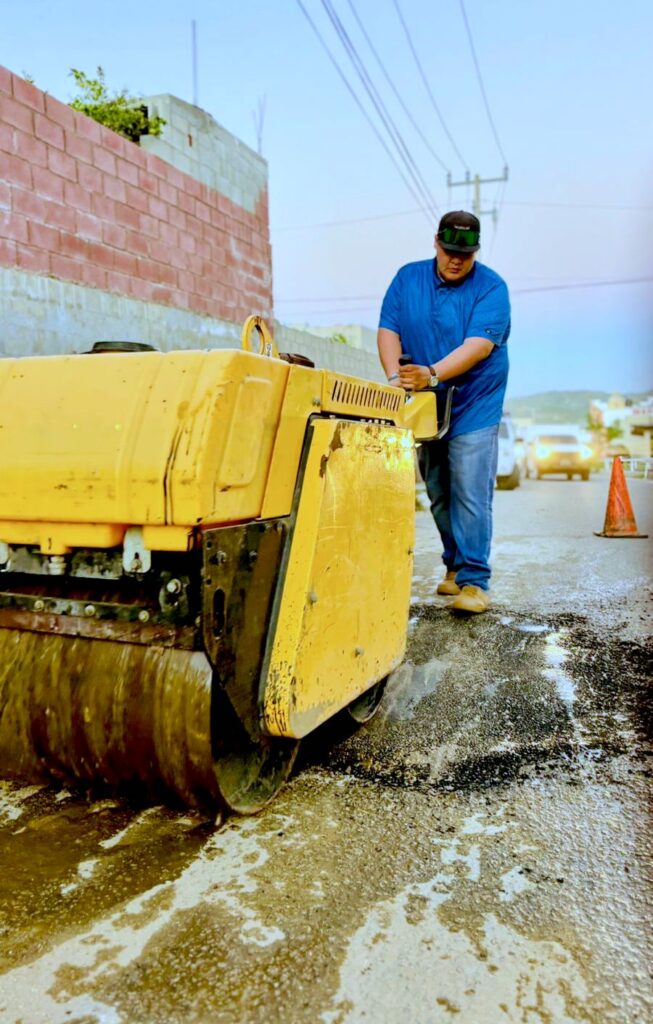 Durante las últimas jornadas, cuadrillas operativas realizaron trabajos nocturnos en calles de la colonia Colinas de San José, en San José del Cabo, utilizando mezcla de asfalto caliente para garantizar mayor durabilidad en las reparaciones.