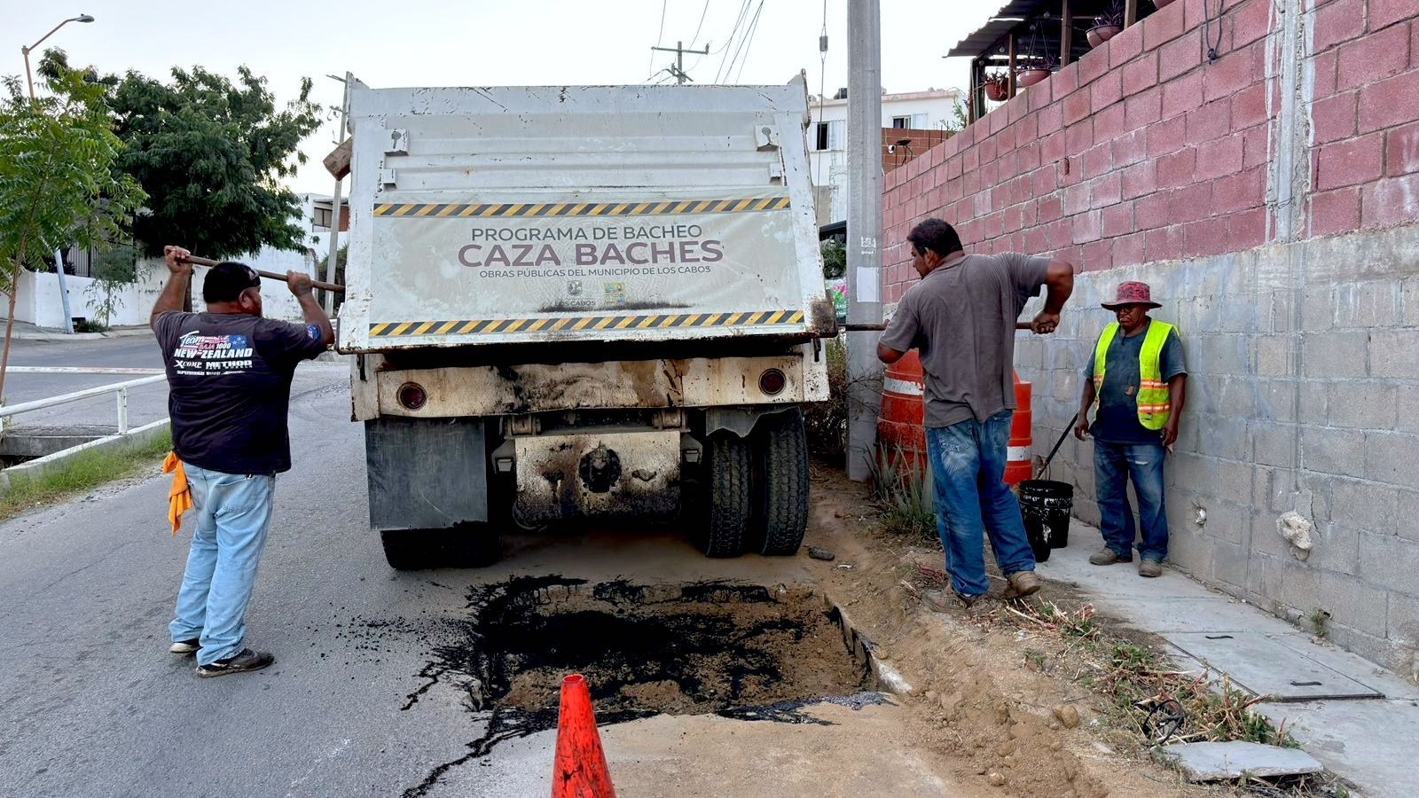 Los Cabos, Baja California Sur.- Con el propósito de mejorar la movilidad urbana y garantizar vialidades seguras, el XV Ayuntamiento de Los Cabos, a través de la Dirección General de Obras Públicas y Oficialía Mayor, continúa registrando avances significativos en la reparación de calles mediante el programa de mantenimiento vial “Caza Baches”.