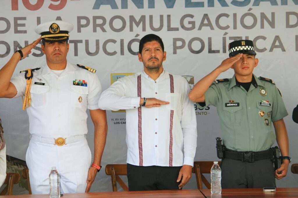 En representación del alcalde Christian Agundez Gómez, el contralor municipal Alejandro Fernández Briseño, encabezó la ceremonia acompañado por el jefe de Gabinete Guillermo Sánchez Flores, quien fungió como orador oficial. Destacando que, la Constitución de 1917 representa la base de la gobernabilidad y el sistema democrático en México, subrayando que para el gobierno municipal, este aniversario implica la responsabilidad de traducir los preceptos constitucionales en una atención ciudadana de calidad, bajo principios de transparencia y justicia social.