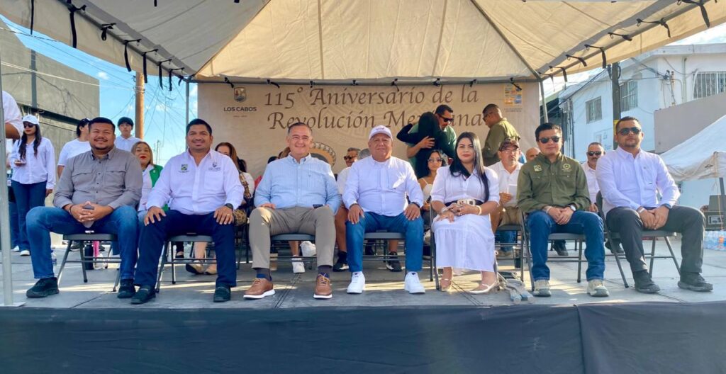 Los Cabos, Baja California Sur.- En representación del presidente municipal de Los Cabos, Christian Agúndez Gómez, el director general de Desarrollo Social, Carlos Castro Ceseña encabezó el desfile cívico-deportivo conmemorativo por el CXV Aniversario de la Revolución Mexicana en la delegación de Cabo San Lucas. El recorrido se desarrolló sobre la calle José María Morelos y Pavón y la avenida de la Juventud, con la participación de 29 contingentes integrados por escuelas de distintos niveles, cuerpos de emergencia y agrupaciones civiles.