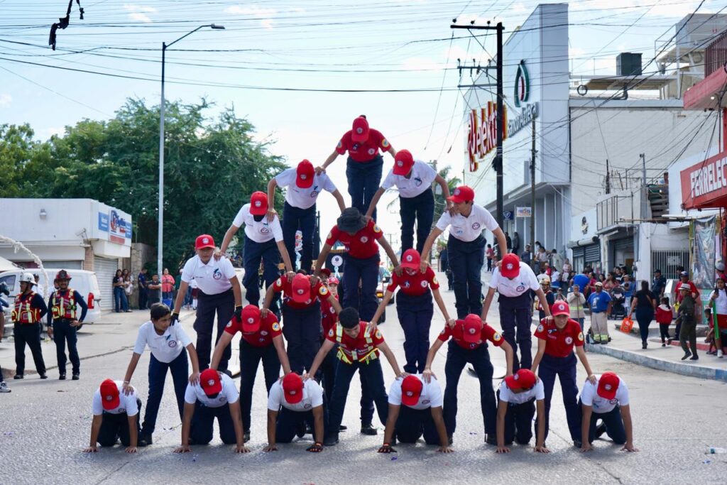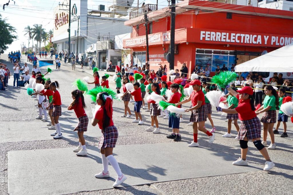 El desfile inició con la banda de guerra y escolta del CBTIS 256, dando paso a los contingentes escolares del Centro de Atención Múltiple “Profr. Juan Pedrín Castillo”, así como de las primarias Amelia Wilkes, Ramón Green Álvarez, Efraín Ceseña Ceseña, Ildefonso Green Ceseña, Jesús Castro Agúndez y el Colegio Leonardo Da Vinci. En nivel secundaria participaron la Técnica No. 18 Moisés Sáenz Garza, Secundaria General No. 8, Técnica No. 16, Raúl Enrique Guerrero Montaño y Técnica No. 19.