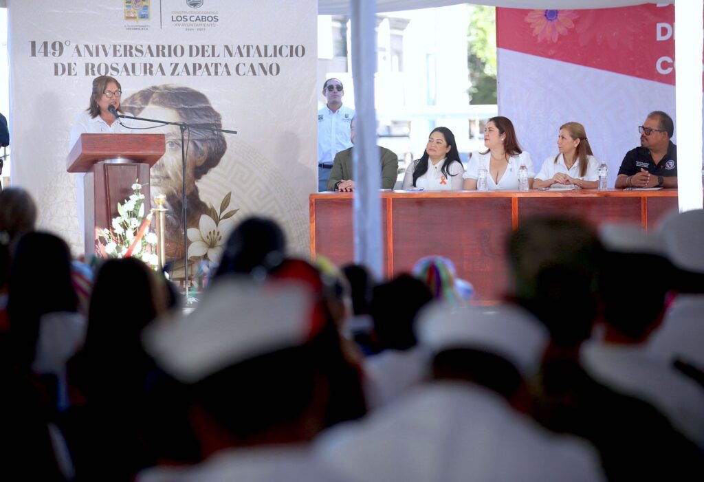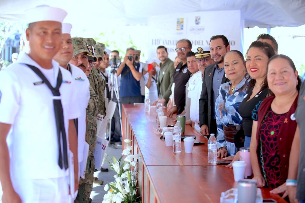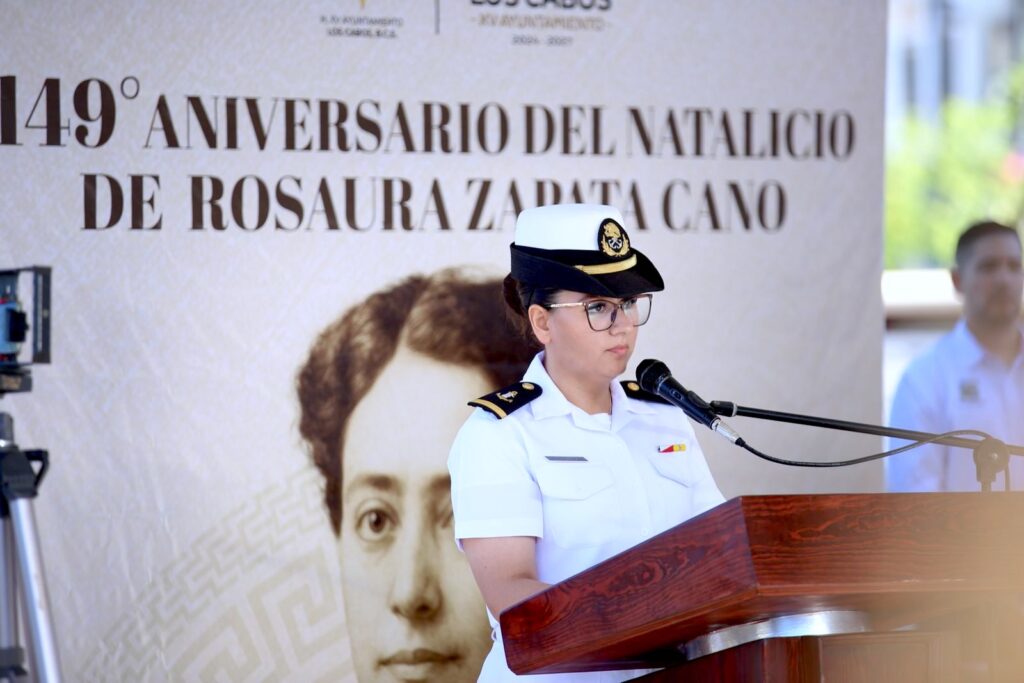 Los Cabos, Baja California Sur.- El XV Ayuntamiento de Los Cabos, a través de la Dirección General de Desarrollo Social y la Dirección Municipal de Educación, en coordinación con el Instituto de las Mujeres del Municipio de Los Cabos y el Sector Naval de Cabo San Lucas, llevó a cabo una ceremonia cívica para conmemorar tres efemérides de gran relevancia: el Día Internacional de la Eliminación de la Violencia contra las Mujeres, el 149° aniversario del natalicio de Rosaura Zapata Cano y el bicentenario de la consolidación de la Independencia en la Mar.