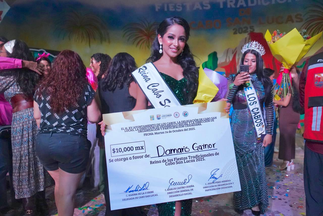 Los Cabos, Baja California Sur.- El XV Ayuntamiento de Los Cabos, a través de la Dirección Municipal de Participación y Organización Ciudadana y la Delegación de Cabo San Lucas celebró el certamen para elegir a la Reina de las Fiestas Tradicionales Cabo San Lucas 2025, un evento que promueve la participación de la juventud y la preservación de las costumbres locales.