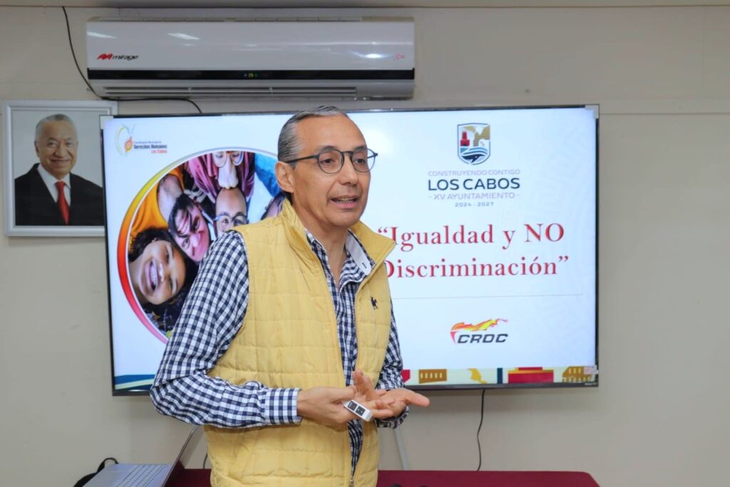 Los Cabos, Baja California Sur.– El XV Ayuntamiento de Los Cabos, a través de la Coordinación Municipal de Derechos Humanos, llevó a cabo la ponencia “Igualdad y No Discriminación” en Cabo San Lucas, dirigida a integrantes del Frente Juvenil Sindicalista de la CROC en Baja California Sur.