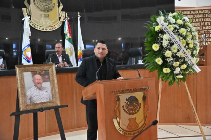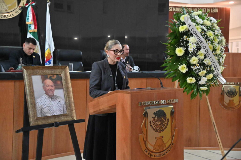 “Hoy recordamos a un extraordinario ser humano, quien hace unos días nos dejó físicamente, pero el recuerdo de sus acciones desarrolladas a su paso por el sector público a lo largo de más de 50 años a favor de las mejores causas de nuestra Patria Chica quedará siempre en la memoria colectiva del pueblo de Baja California Sur”, expresó desde tribuna el legislador.