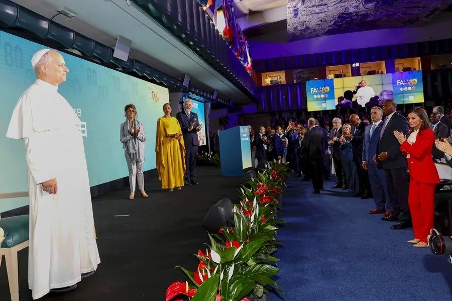 El pontífice estadounidense se desplazó esta mañana del Vaticano hasta la sede romana de la FAO para participar en los actos del Día Mundial de la Alimentación junto a otras autoridades como la reina Letizia de España o el presidente de Uruguay, Yamandú Orsi.