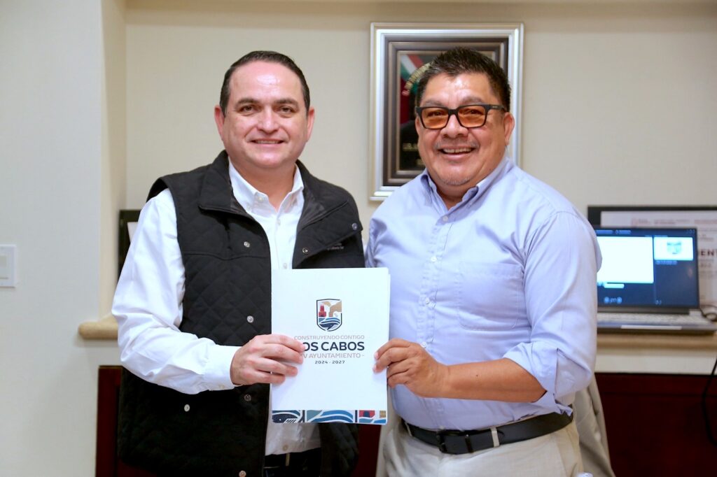 Los Cabos, Baja California Sur.- En representación del presidente municipal del XV Ayuntamiento de Los Cabos, Christian Agúndez Gómez, el secretario general Alberto Rentería Santana, sostuvo una importante reunión con el subsecretario de Economía de Baja California Sur, Alonso Gutiérrez Martínez, con el objetivo de fortalecer estrategias en beneficio del sector productor y personas emprendedoras.