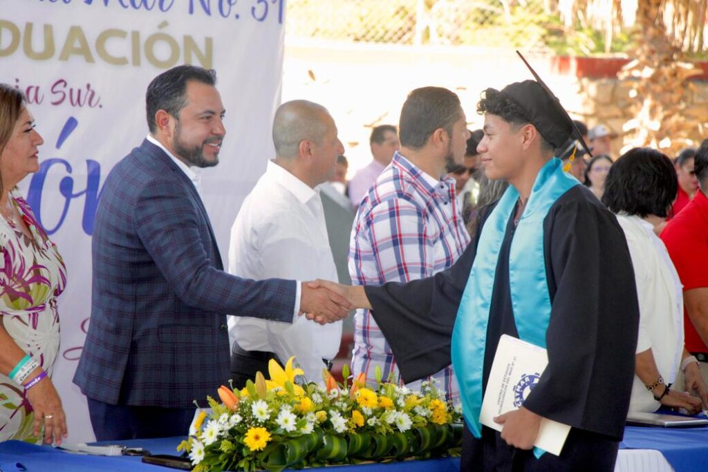 Los Cabos, Baja California Sur.- Con motivo de la clausura de la trigésima generación 2022–2025 del Centro de Estudios Tecnológicos del Mar No. 31 “Gral. Francisco Villa” (Cetmar No. 31), el presidente municipal de Los Cabos, Christian Agúndez Gómez, encabezó la ceremonia oficial celebrada en el Auditorio Municipal “Leonardo Gastélum” de Cabo San Lucas, donde se graduaron 576 estudiantes.