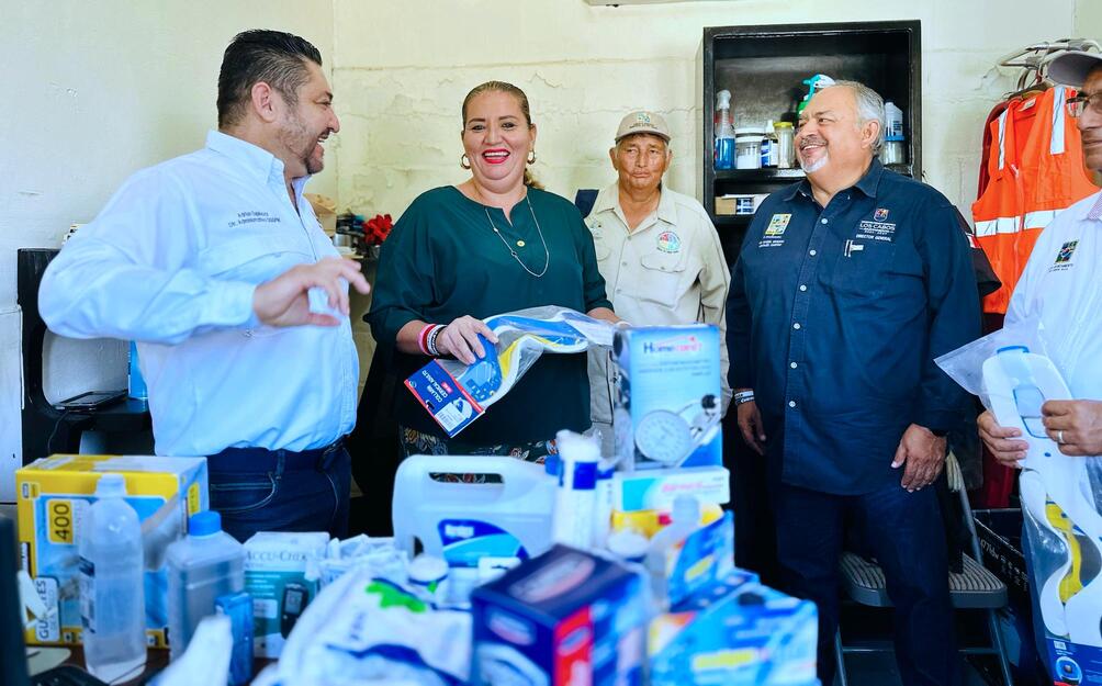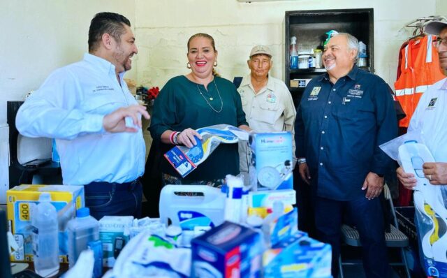 Los Cabos, Baja California Sur.- La VI regidora Marisela Montaño Peralta, realizó la entrega de medicamentos básicos al personal de la Dirección General de Servicios Públicos, encabezada por Manuel Ernesto Montaño Castro.