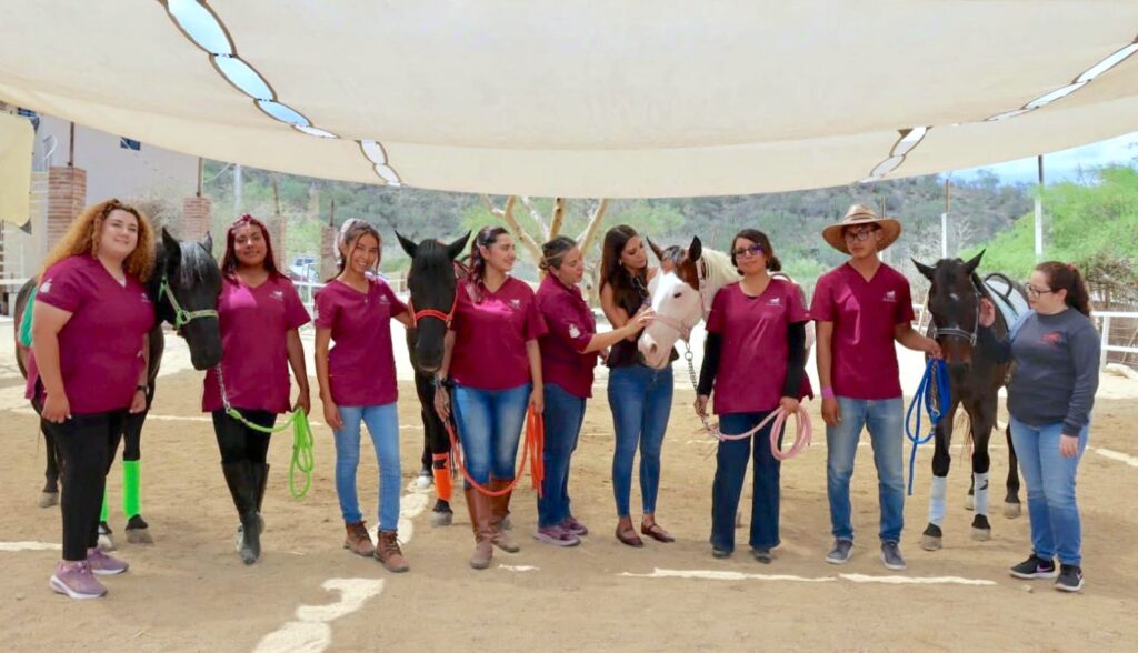 Este programa es impartido por personal certificado en materia de salud y tiene como propósito fortalecer las capacidades físicas de las y los beneficiarios, así como mejorar su calidad de vida, habilidades motrices, autoestima, seguridad, confianza y manejo de emociones mediante sesiones terapéuticas con caballos.