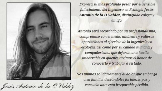 El Colegio de Ingenieros destacó que Jesús Antonio de la O Valdez será recordado por su profesionalismo, calidad humana y compañerismo, al tiempo que expresó solidaridad con su familia y seres queridos ante esta pérdida irreparable.