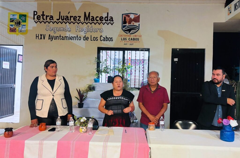 Los Cabos, Baja California Sur.- Con el objetivo de garantizar un diálogo directo y respetuoso con los pueblos indígenas y la comunidad afromexicana de Los Cabos, el primer regidor José Manuel Larumbe Pineda, la II regidora María Petra Juárez Maceda y el director del Instituto Municipal de Asuntos Indígenas y Afromexicanos (IMAIA), Leonardo Jiménez Castrejón, encabezaron una asamblea informativa para presentar y escuchar opiniones sobre la propuesta presentada por el propio regidor Larumbe ante el Cabildo.