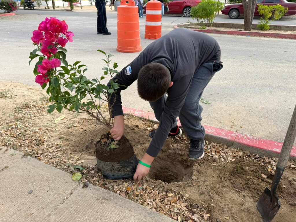 En esta actividad se contó con la participación de la regidora del Cabildo Infantil del Municipio de Los Cabos, Monserrat Ilari Salas Cruz; jóvenes deportistas del equipo delegacional de básquetbol “Pitahayitas”; así como niñas, niños y docentes de la escuela primaria José L. Gavarain, quienes se sumaron con entusiasmo a la plantación de bugambilias para embellecer diversas calles de la comunidad.