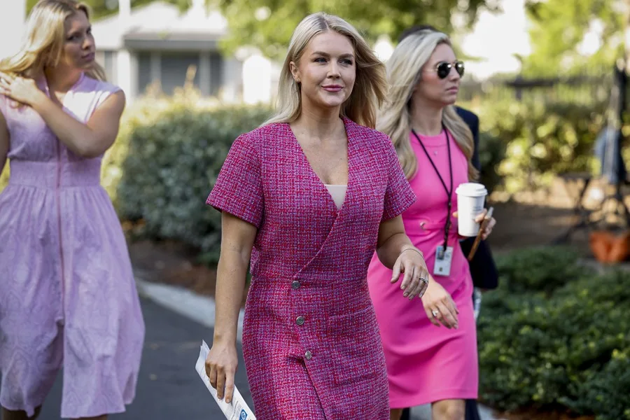 La portavoz de la Casa Blanca, Karoline Leavitt, a su entrada a una sesión de entrevistas de televisión, este 23 de junio de 2025, en la Casa Blanca. EFE/Shawn Thew/Pool