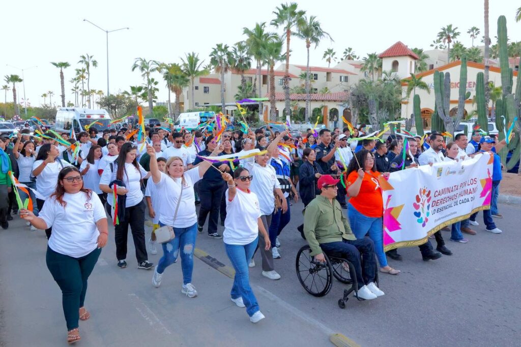 La marcha reunió a personal de áreas del Ayuntamiento de Los Cabos como Bomberos, Seguridad Pública, el Instituto Municipal de las Mujeres, el Instituto Municipal para las Personas con Discapacidad (IMDIS), Ecología, Protección Civil y la Coordinación de Subdelegados, además de estudiantes del Cobach 02 y diversos grupos ciudadanos. Estas acciones forman parte del trabajo permanente que impulsa la administración encabezada por el alcalde Christian Agúndez Gómez, para fortalecer la promoción y defensa de los derechos humanos en el municipio.