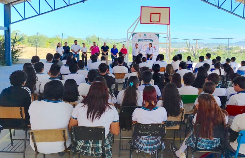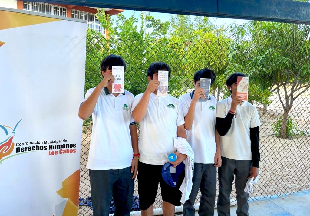 Los Cabos, Baja California Sur.– Con el propósito de promover el cuidado emocional y la prevención del consumo de sustancias, la Coordinación Municipal de Derechos Humanos de Los Cabos, encabezada por Claudia Armenta López, llevó a cabo las Jornadas Sustentables en el Telebachillerato Comunitario No. 40 de Santa Anita.
