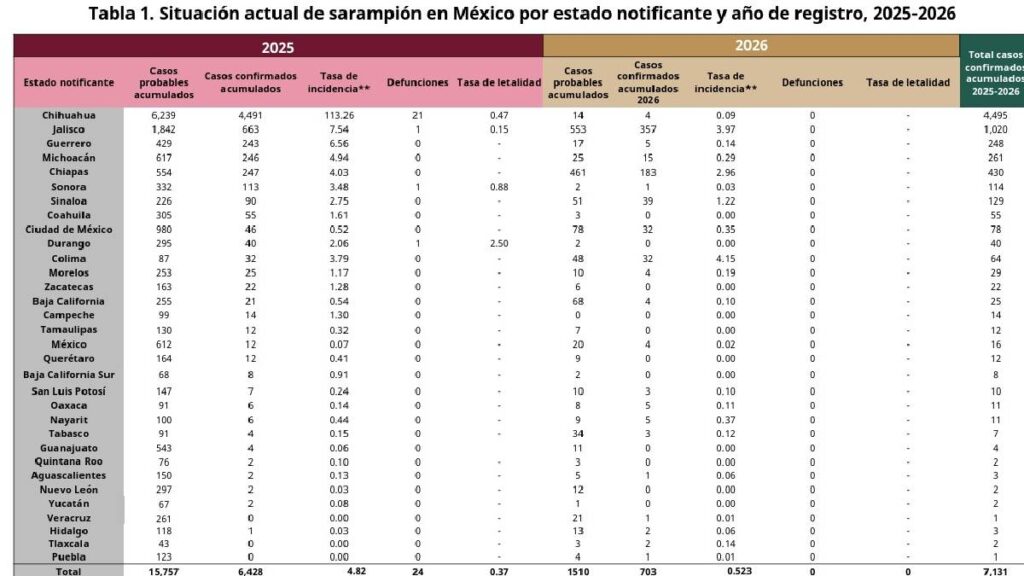 La aparición de casos en los 32 estados de México recuerda que la vacunación y las medidas preventivas son esenciales para contener el brote.