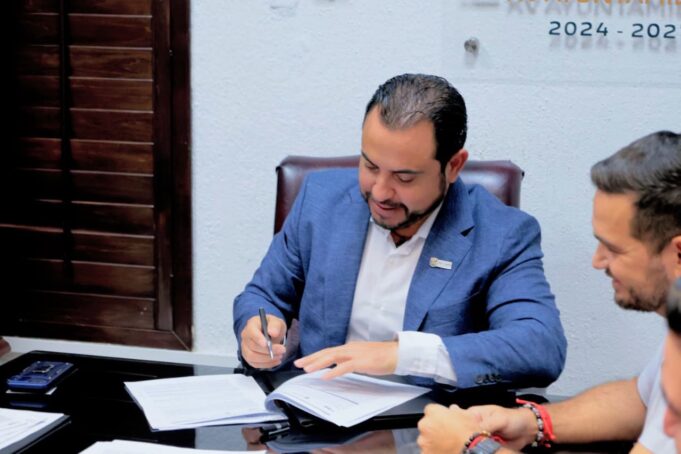 En la firma del documento participaron también el secretario general Alberto Rentería Santana; el contralor municipal, Mario Alejandro Fernández Briseño; y la síndica municipal, Nélida Alfaro Rosas, quien signará el acuerdo en el proceso correspondiente.