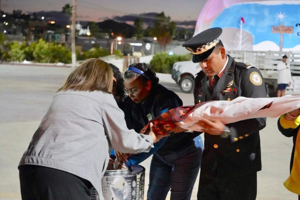 Los Cabos, Baja California Sur.– En el marco del Mes de la Bandera, el XV Ayuntamiento de Los Cabos, a través de la Dirección Municipal de Educación, llevó a cabo el protocolo cívico de arrío e incineración de la Bandera Nacional que ondeaba en la plaza pública “León Cota Collins”, en la delegación de Cabo San Lucas, como un acto de respeto y honor a uno de los máximos símbolos patrios de México.