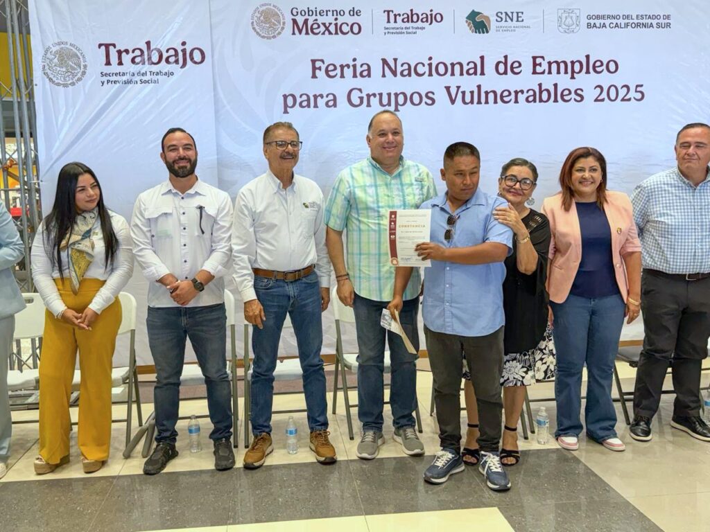 Asimismo, se contó con la presencia del director general de Desarrollo Social Carlos Castro Ceseña; el secretario del Trabajo, Bienestar y Desarrollo Social, Omar Antonio Zavala Agúndez y del director del Servicio Nacional de Empleo en Baja California Sur (SNEBCS), José Manuel Rojas Aguilar, quienes reconocieron el esfuerzo conjunto entre los tres niveles de gobierno y la iniciativa privada para fortalecer el empleo formal en el estado.