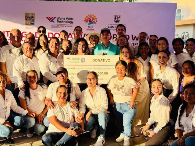 Los Cabos, Baja California Sur.- En representación de la presidenta honoraria del Sistema Municipal para el Desarrollo Integral de la Familia (DIF) de Los Cabos, Sol Delgado Moreno, la directora general Estela Alejandrina Bañuelos Gutiérrez recibió un donativo de 10 mil dólares por parte del torneo de golf “World Wide Technology Championship 2025”, que se realiza del 03 al 09 de noviembre en el campo El Cardonal, dentro del complejo turístico Diamante en Cabo San Lucas, como parte del calendario oficial del PGA Tour.