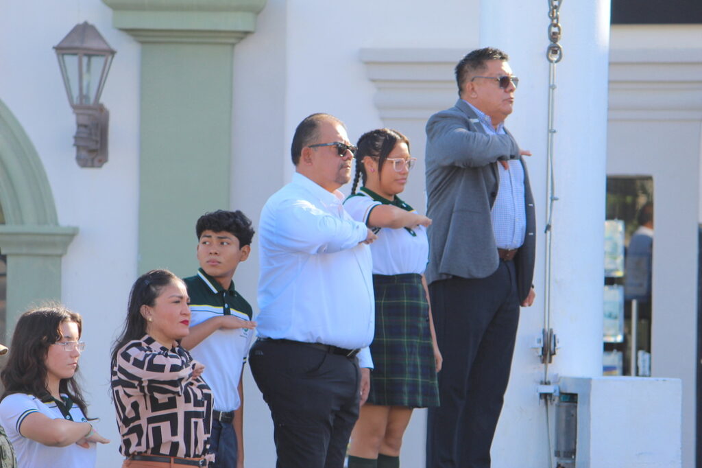 Los Cabos, Baja California Sur.- En el marco de la ceremonia cívica de honores a la bandera, el XV Ayuntamiento de Los Cabos reconoció el compromiso y la entrega del personal sindicalizado. En representación del alcalde Christian Agúndez Gómez, el secretario general, Alberto Rentería Santana, encabezó el acto cívico, acompañado de integrantes del Cabildo, diputadas locales, representantes de las fuerzas armadas, personal docente, estudiantil y servidores públicos municipales.