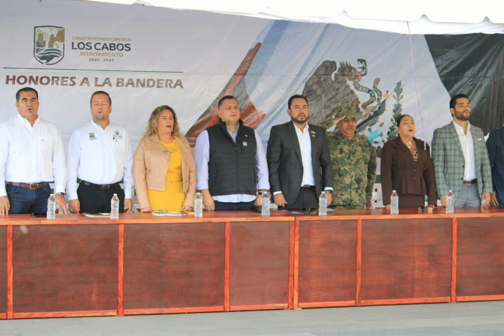 Los Cabos, Baja California Sur.– Durante la ceremonia cívica de honores a la bandera, encabezada por el alcalde Christian Agúndez Gómez, el Ayuntamiento de Los Cabos refrendó su ruta de crecimiento económico y fortalecimiento institucional, con el anuncio de acciones estratégicas para la atracción de inversiones.