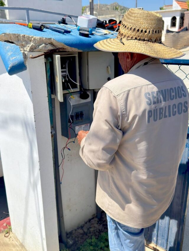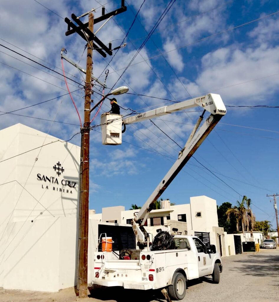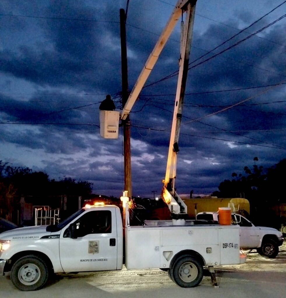 Los Cabos, Baja California Sur.- Con el objetivo de brindar espacios más iluminados y seguros en el municipio, el XV Ayuntamiento de Los Cabos, a través de la Dirección General de Servicios Públicos, implementa de manera permanente trabajos de rehabilitación y reparación de alumbrado público en distintas colonias y sectores de la ciudad.