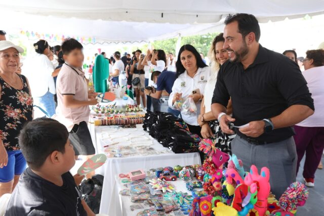 Correspondió al alcalde, Christian Agúndez iniciar el recorrido; a quien se le sumó su esposa, presidenta honoraria de DIF Municipal, Sol Delgado Moreno; quienes además de intercambiar palabras con niñas y niños participantes, adquirieron diversos productos que se ofertaban en los direrentes módulos.