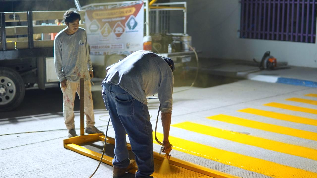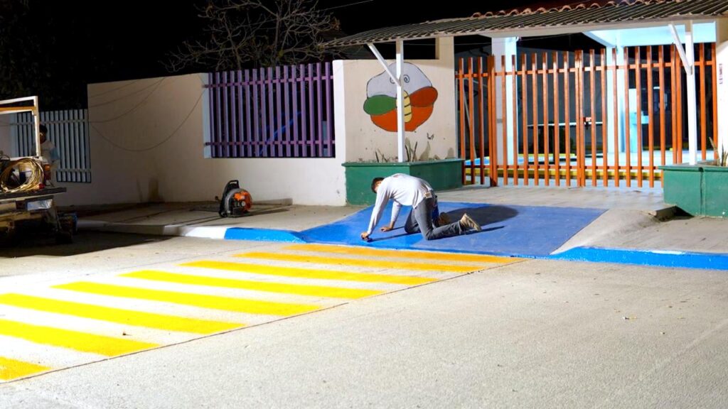 Los Cabos, Baja California Sur.– La XV Administración de Los Cabos realizó trabajos de mantenimiento y rehabilitación en la colonia San José Viejo, a través del programa “Transformación Vial”, en atención a reportes ciudadanos y necesidades detectadas en la zona. Las labores se llevaron a cabo en las inmediaciones del Jardín de Niños Domingo Félix Carballo, donde personal municipal realizó trabajos de limpieza, pintura y señalización de la vialidad, además del retiro de topes deteriorados que ya habían concluido su vida útil, los cuales serán sustituidos por nuevos dispositivos de control de velocidad.