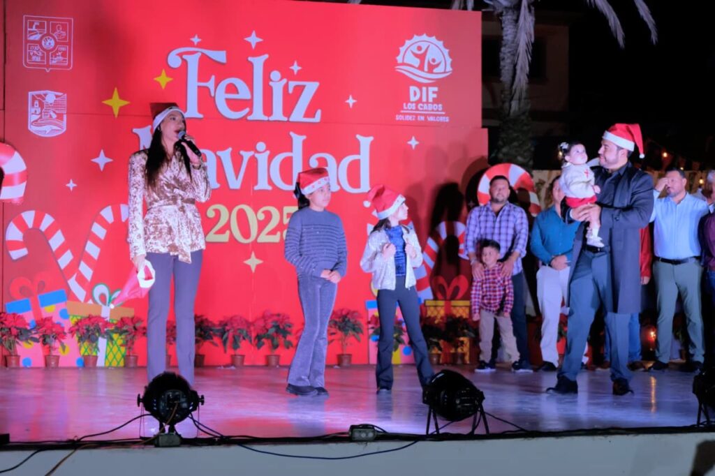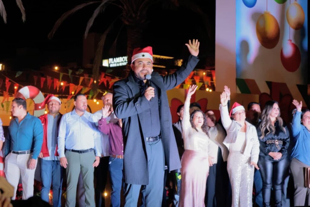 Los Cabos, Baja California Sur.-La noche de este viernes 12 de diciembre, se realizó el tradicional Encendido del Árbol Navideño, el cual se efectuó de manera simultánea en las plazas públicas de San José del Cabo, Cabo San Lucas, Miraflores, Santiago y La Ribera; en la cabecera municipal el evento tuvo lugar en la Plaza Pública Teniente José Antonio Mijares, encabezado por el presidente municipal, Christian Agúndez Gómez y la presidenta honoraria del Sistema Municipal para el Desarrollo Integral de la Familia (SMDIF) Los Cabos, Sol Delgado Moreno, junto a sus hijas, así como integrantes del Cabildo y autoridades de la XV Administración.